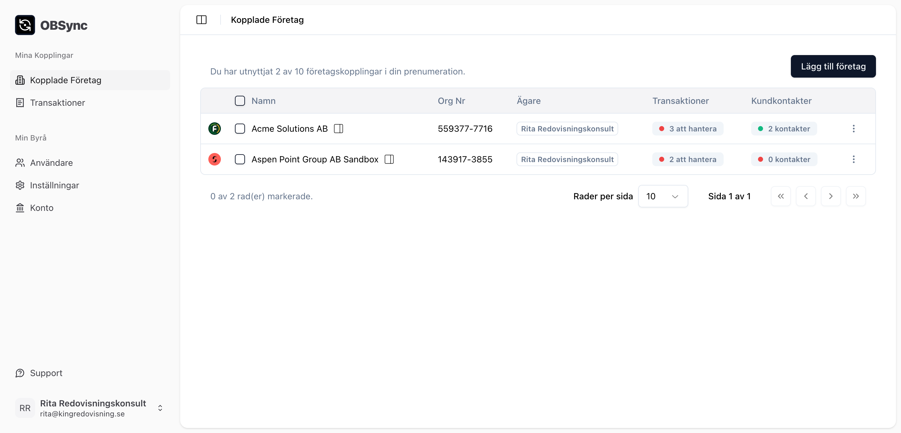 - Koppla på din kund genom ett enkelt integrationsflöde i OBSync: https://app.obsync.se/signup