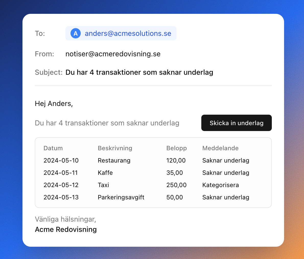 - Automatisk kunduppföljning med löpande notifikationer om vilken information som saknas i bokföringen